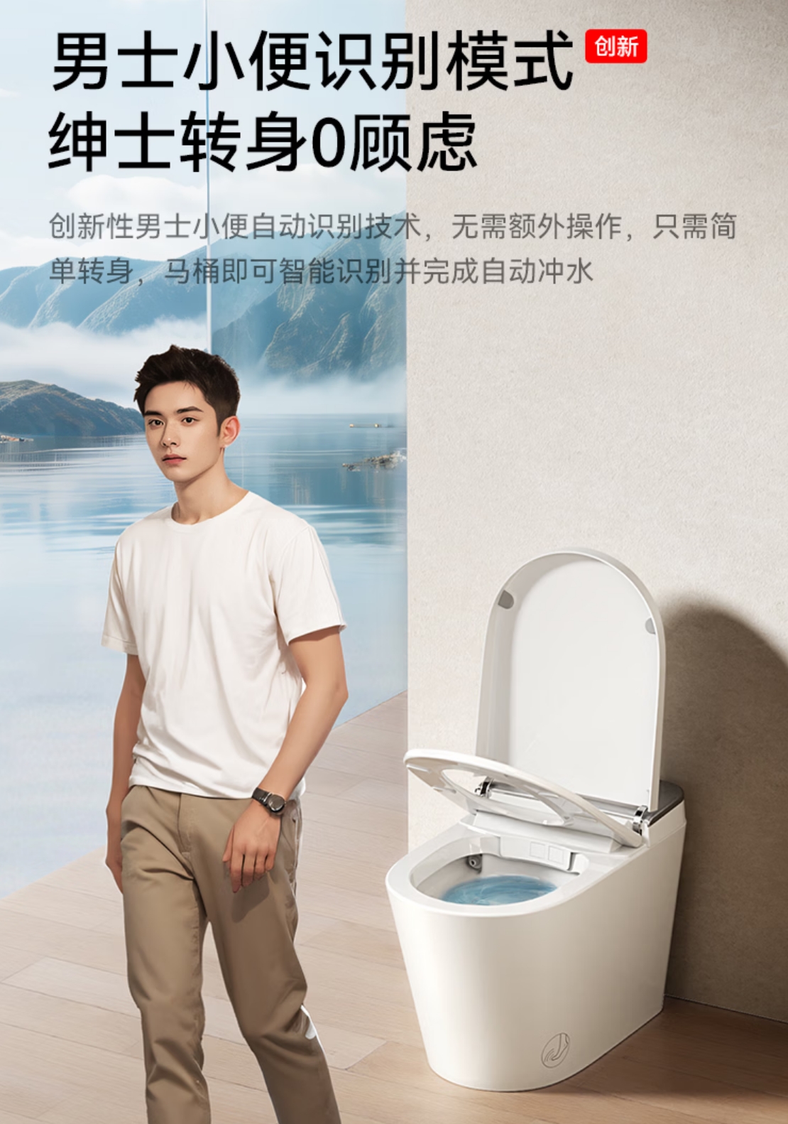佳普乐智能马桶R6A支持智能联动控制其他设备,马桶落座,即可感应开启浴霸换气、镜柜薰香等功能。此外,这款马桶还搭载创新性男士小便识别技术,转身即可实现自动冲水,贴心服务于男士或银发族人群的安全。