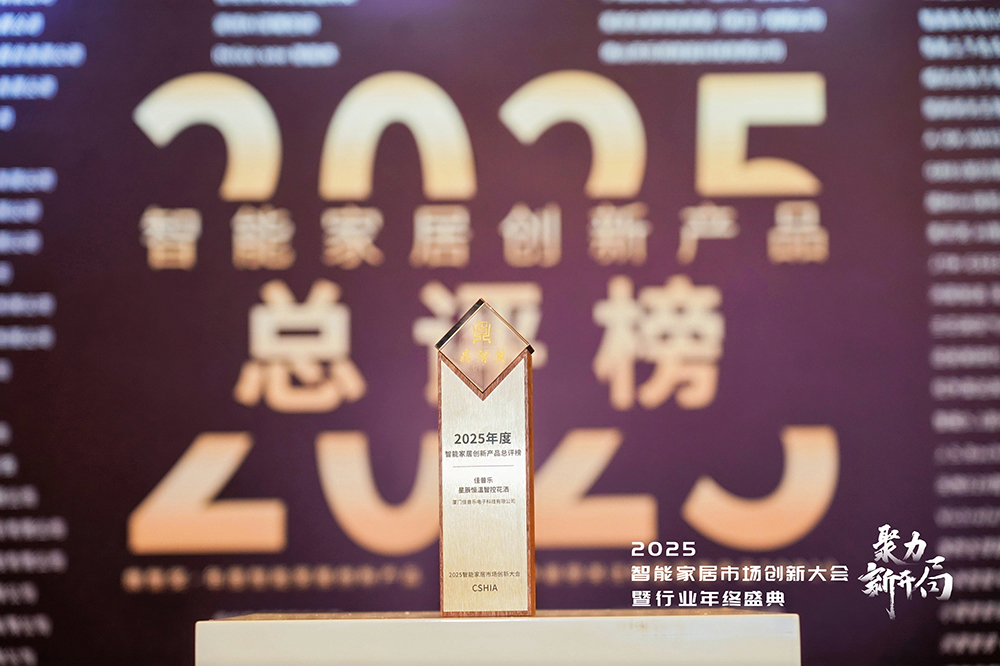 2025上半年,佳普乐以行业专家身份亮相智能家居生态峰会,发表专题演讲,展览智能卫浴方案。2025下半年,于智能家居创新大会共探行业新态势,荣获“鼎智奖·2025年度智能家居创新产品”。