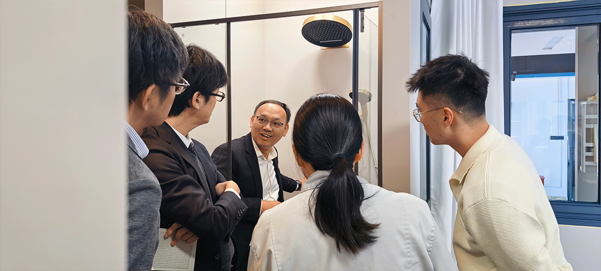 佳普乐总经理谢海财携团队热情迎接TOTO一行,TOTO团队首站走进佳普乐卫浴全场景空间展厅。通过智慧屏的直观展示、小艺语音的便捷交互、手机APP的远程操控等多种方式,为贵客们生动演示并详细解说了洗漱、淋浴、泡澡、如厕等多种卫浴生活场景子系统。每一个场景都仿佛是一个精心编排的舞台剧,将智能卫浴的便捷与舒适展现得淋漓尽致,让TOTO团队成员们亲身感受到了智能卫浴为生活带来的巨大变革。